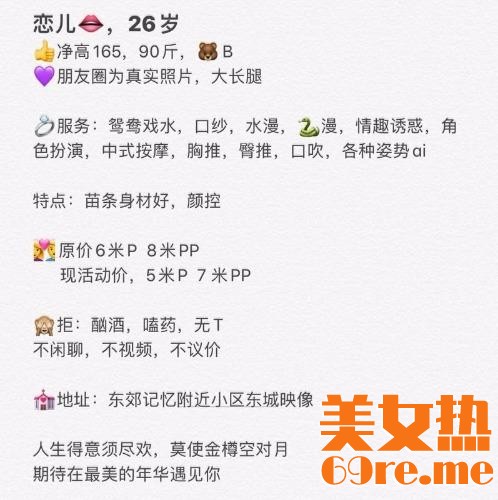 【寻欢时间】:2020年05月22日 【寻欢地点】:成都市二仙桥附近(大概位置) 【信息来源】:狼友推荐、论坛、亲身体验 【服务项目】:鸳鸯浴,漫游,胸推,69式,冰火,口活,爱爱、情趣诱惑,按摩,各种姿势ai( ...